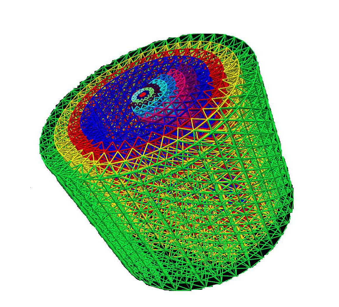 在实际探测成像中,大多数的探测对象都不是理想的几何形态,常常是高度非规则的,甚至是非常复杂的。 而在对探测对象进行成像计算中,却又需要对探测对象作尽可能完整的微元剖分。在探测对象的几何形态和边界都非常复杂时, 长方体形状和三棱柱形状的剖分微元很难贴切地实现对探测对象的完整剖分,此时只有采用四面体微元才能够实现对探测对 象的完整剖分。因此,三维四面体剖分在针对复杂探测对象的成像计算中具有非常重要的意义。