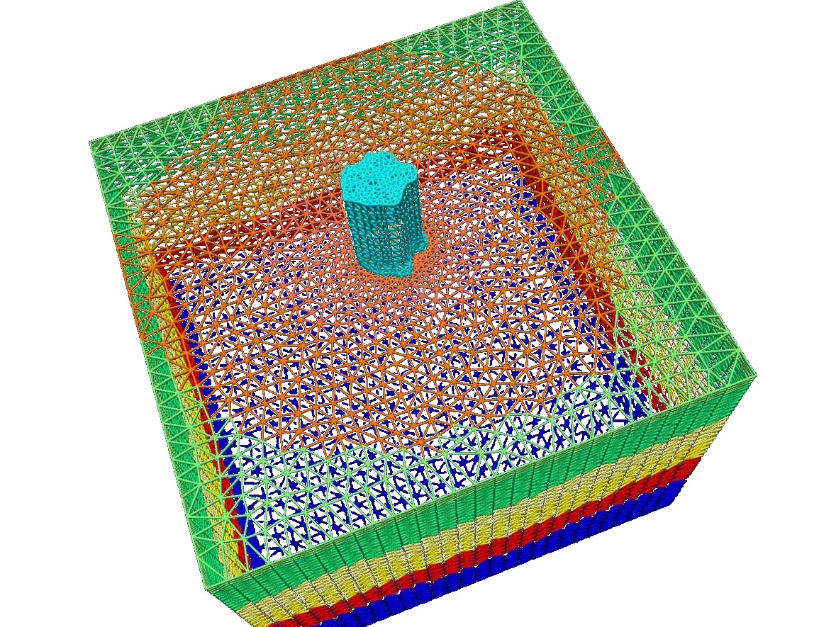 ![]() 对树桩及其周围区域的三维四面体剖分 |