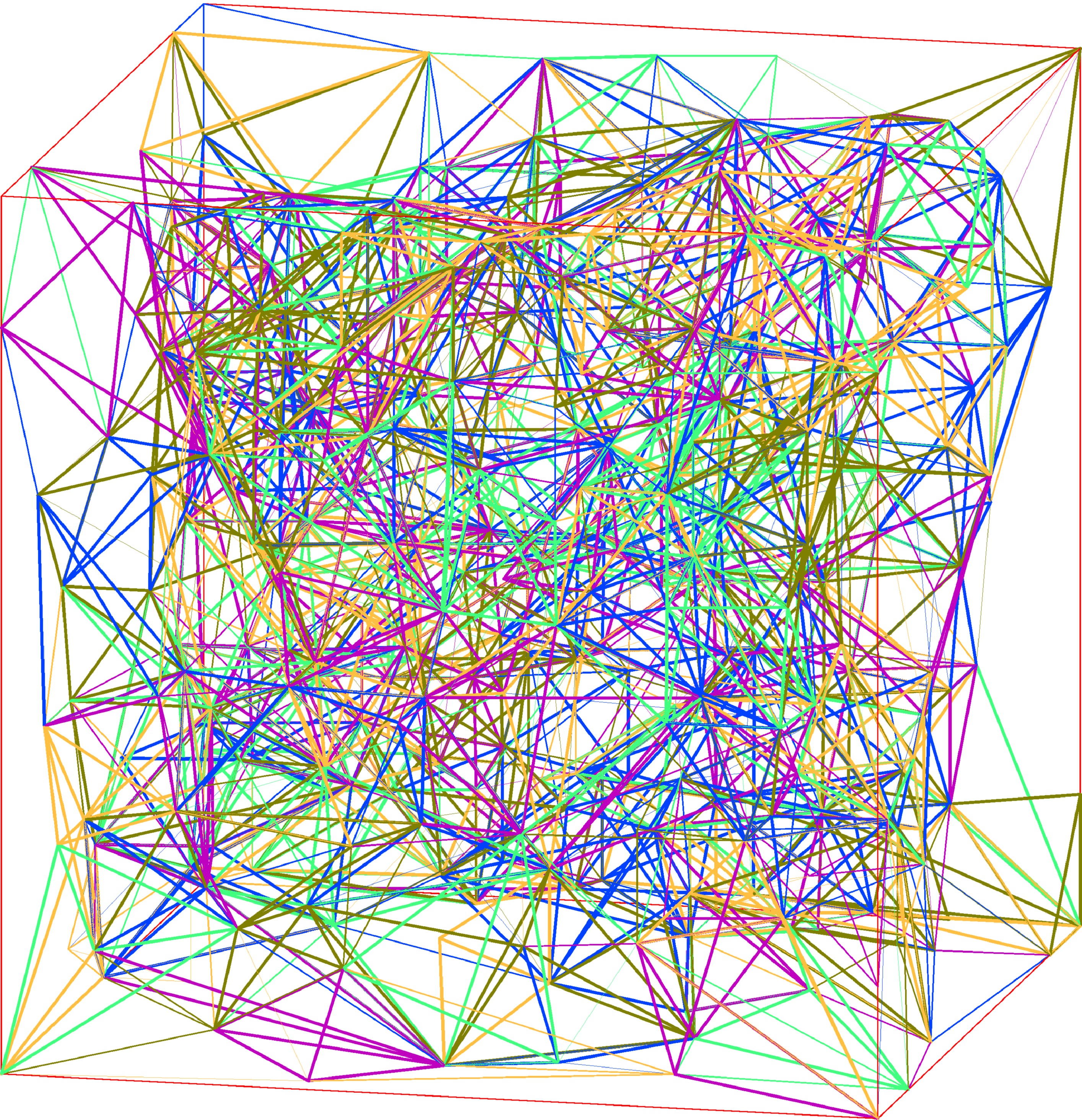 对于具备理想几何形态和边界的对象而言,可以通过一定的算法直接对探测对象进行剖分,并在剖分的同时 确定节点。例如,对于球体、圆柱、椎体、六面体等可以用解析函数刻画的对象而言,就可以采用直接剖分的方法实现四面体 剖分,在剖分之前,空间节点的位置和数量都是未知的。但对于具有复杂几何形态和边界的物体而言,前述剖分方法就很难 实现。例如,海边一块带棱角的石块、悬崖峭壁的壁面等都是这种具有复杂几何形态和边界的对象。此时,我们就先确定空 间的节点,再根据这些已知的节点进行四面体剖分。本软件就是采用这种先已知节点的方式实现对探测对象的四面体剖分的。 显然,这种方法针对可用解析函数刻画的理想对象而言也是完全适用的。